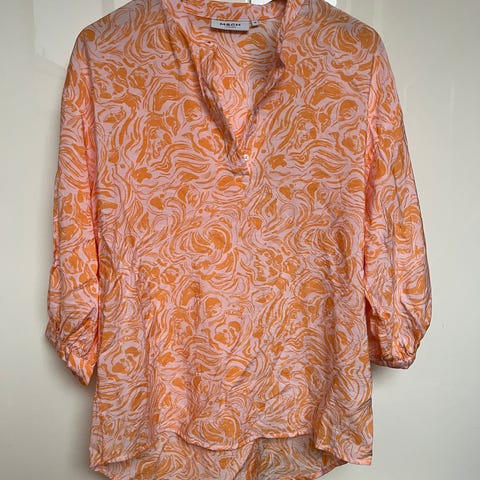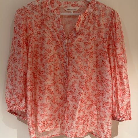 Lappen med vaskeinstruksjoner er klippet av så det er ukjent hvilket materiale blusen er i.
