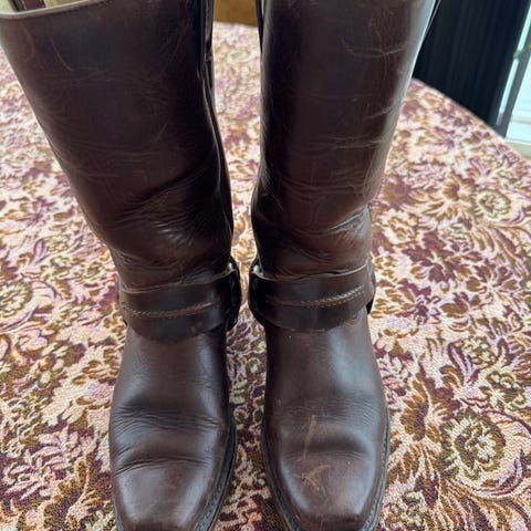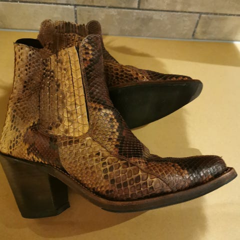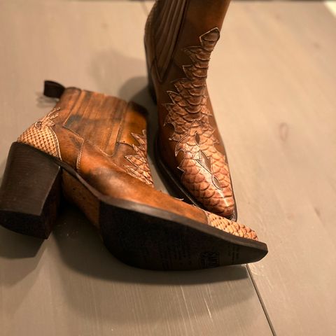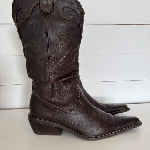 Originale boots fra Sancho fra 1990-tallet! Str 36. De er i kraftig lær og stivt skaft, som man i ‘gamle dager’ ofte måtte bruke plastposer på føttene for å få de på 😆. Dvs inntil de blir brukt mer og passformen mer tilpasset din fot. Sender gjerne med Postnord kr 69,-.) Selges kr 895,-
