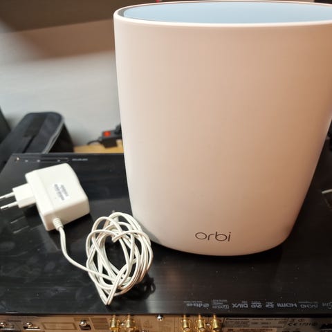 Netgear Orbi Router med trådløs nettverksteknologi. Enhetene er designet for å gi utvidet nettverksdekning i hjem eller kontor. Hver router har en kompakt, hvit design og er beregnet for bruk i nettverksoppsett som krever pålitelig trådløs tilkobling.