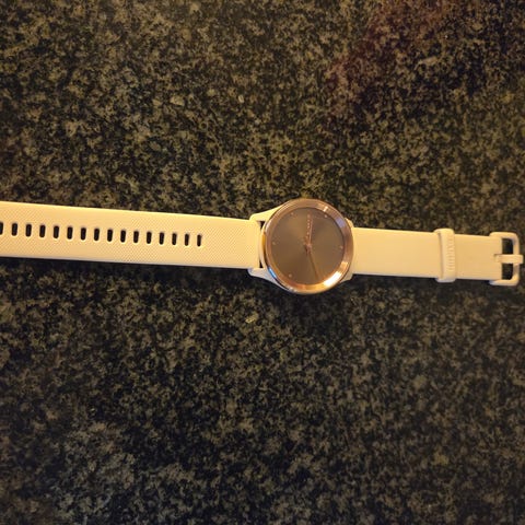 2 år gammel klokke til salgs, pga oppgradering. Grå klokke selges med hvite, grå og rosa remmer. Samt har en svart rem som er i «tøy». lader følger med