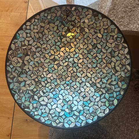 Mosaikk glass plate med forskjellige farger på glass . Str 134x 73 Den er demontert og hel