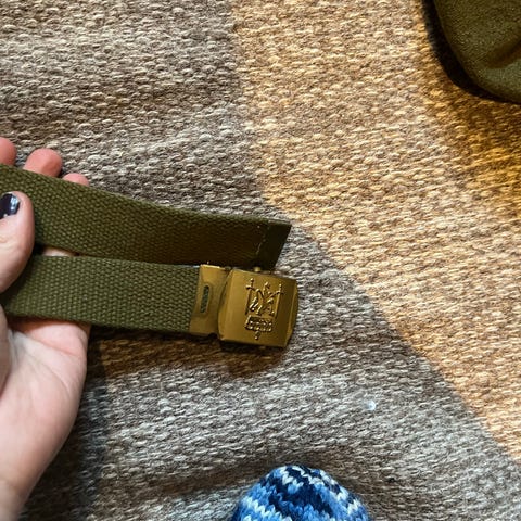 Hei, jeg er en mann ansatt i forsvaret som leter etter et slikt hvitt belte som man har festet rundt midjen tilhørende blå uniform.