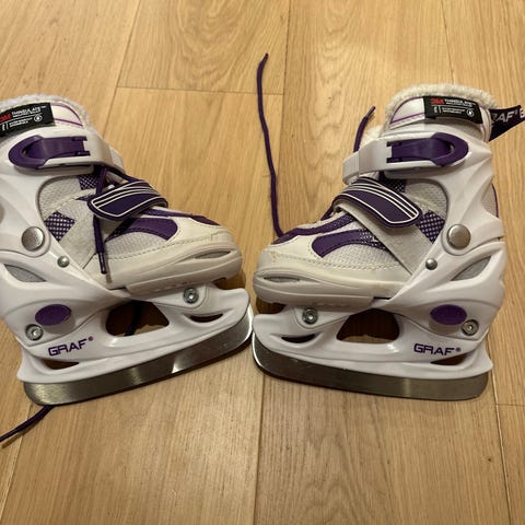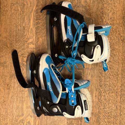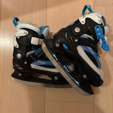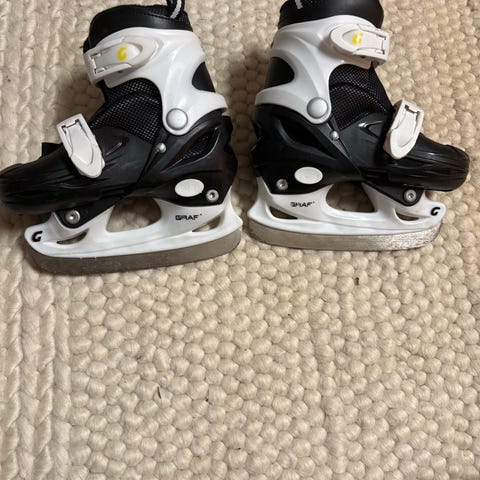 Graf barn ishockey. Skøytene har justerbar størrelse med et system som dekker størrelsene 27 til 30. Ikke brukt så mange ganger.