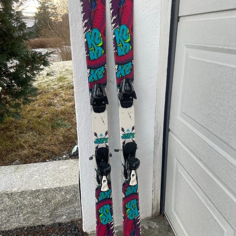 Kule slalomski / alpintski / twintip type K2 INDY 112cm. Med bindinger type Marker 7.0. Gode og lettsvingte ski for barn. Lagt på myk glider før de ble satt bort etter forrige vinter.