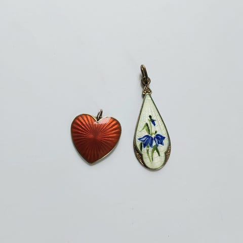 Halssmykke i forgylt sølv med hvit emalje