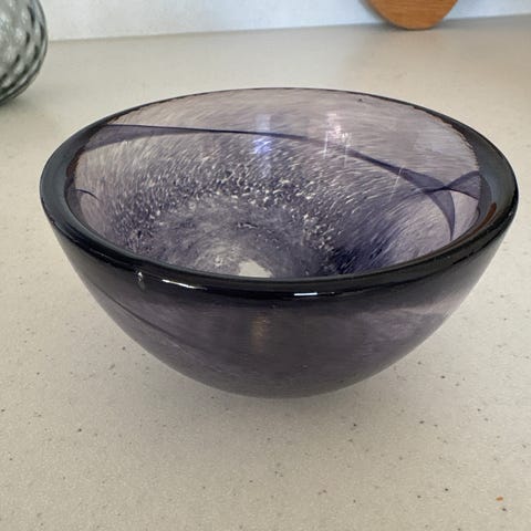 Vakker og flott skål i serien Fersken, designet av Willy Johansson for Hadeland Glassverk.