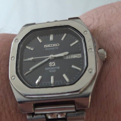 Søkeord: herreklokke, seiko sq, retro klokke, vintage klokke, 80-tallet, 90-tallet, quartz, patina, seiko type 2, seiko type II, retro, vintage klokke, herreklokke, dressklokke, samlerobjekt, quartz revolusjonen