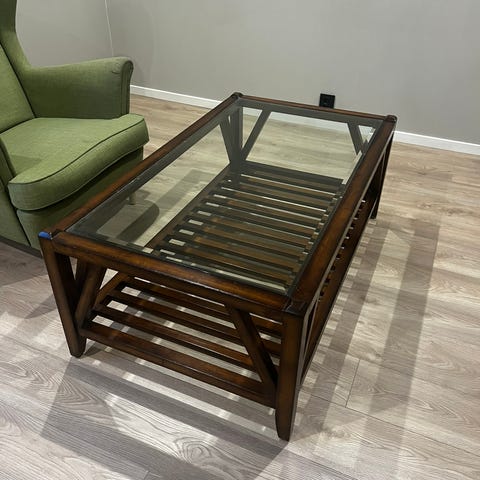 Lite sort bord med asymetrisk form.