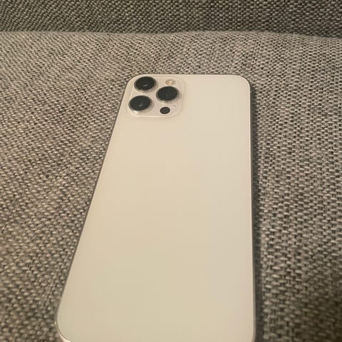 Apple iPhone 12 Pro Max med 128 GB lagringskapasitet. Telefonen har en skjerm med god størrelse og et bakdeksel med trippelkamera. Produktet er designet for generell bruk som smarttelefon.
