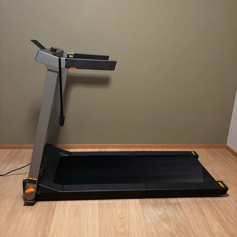 Tredemøllen har også lett fjæring for en mer behagelig opplevelse og mindre støtbelastning på føtter og bein. Hastigheten (0-18 km/t) og stigningen (0-15 %) reguleres med knappene på maskinens to håndtak.