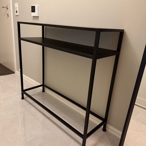 Bordet er 80 cm bredt, 30 cm dypt og 80 cm høyt.