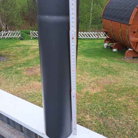 150mm sort blank knebøy/90 grader røykrør, pent brukt.