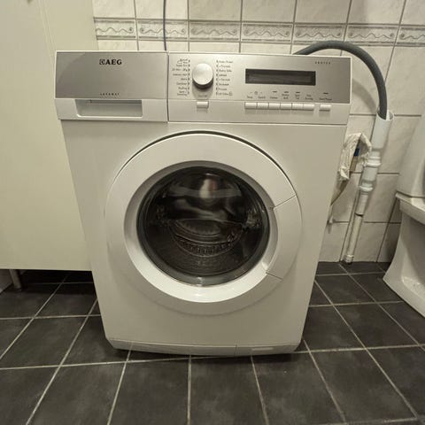 Vaskemaskin fra AEG, 46310, som har en elektronisk feil i dørens lukkemekanisme. Døren lukker som den skal, men maskinen tolker at døren ikke er lukket, og den vil derfor ikke gå videre i programmet. Dette er en kjent svakhet ved denne maskinen.