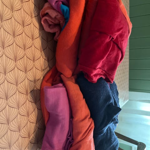 Settet har nupper og noen av plaggene har merker etter navnlapper.