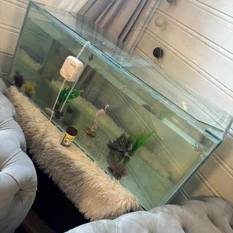 Akvarium den er veldig god stand ingen problem med fire fisk og alt inne Akvarium