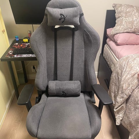 Svart gamingpult 114x60 cm selges, ingen bruksmerker.