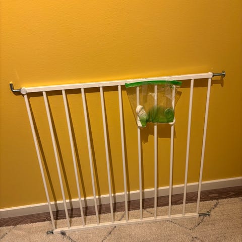 Tre stk trappegrind til salgs. Mulighet for å stille noe bredde på dem. Brukt i anledning trapp. Kr 100 for hver av de hvite og kr 200 for den sorte.