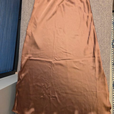 Satin skirt silkeskjerf silke satin sateng brun sølv langt skjørt midiskjørt