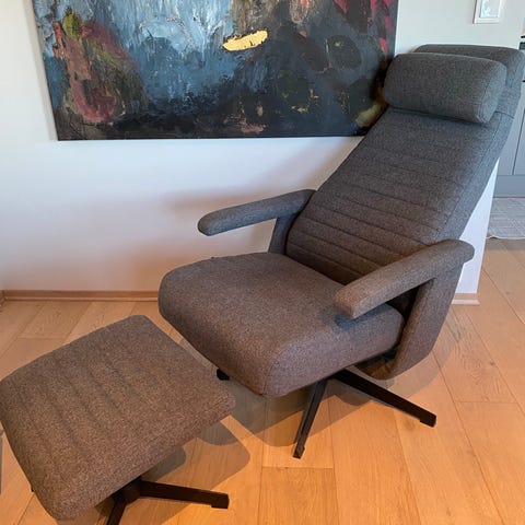Lenestolen har justerbar rygg og kan også brukes som vippestol, noe som gir veldig god sittekomfort.