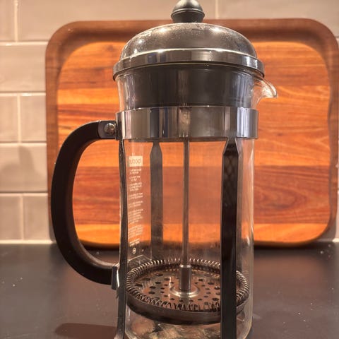 Bodum presskanne laget av glass med svart lokk og håndtak. Egnet for brygging av kaffe eller te ved bruk av pressmetoden. 450 ml