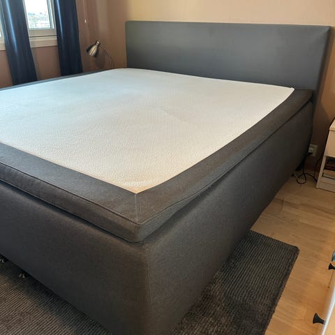 Dobbelseng fra Ikea, Malm serien. Sengen har 4 store skuffer for oppbevaring. Den kommer med madrass og overmadrass. Madrassen er godt og synlig brukt og bør skiftes snarlig. Overmadrassen er noen få måneder gammel. Sengen må hentes i Haugesund sentrum.