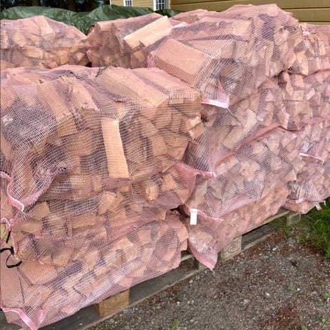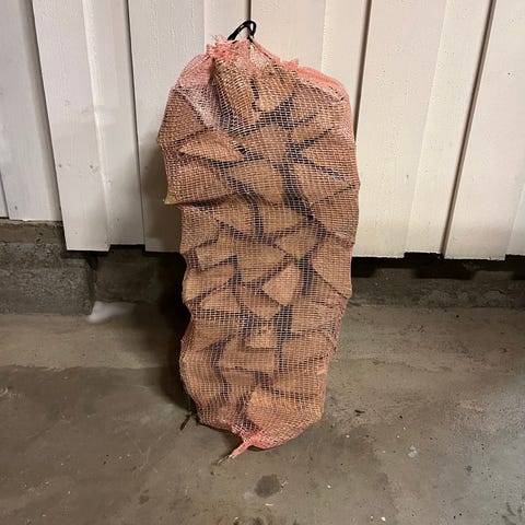 ✔️ Sekket ved – lett å bære og stable