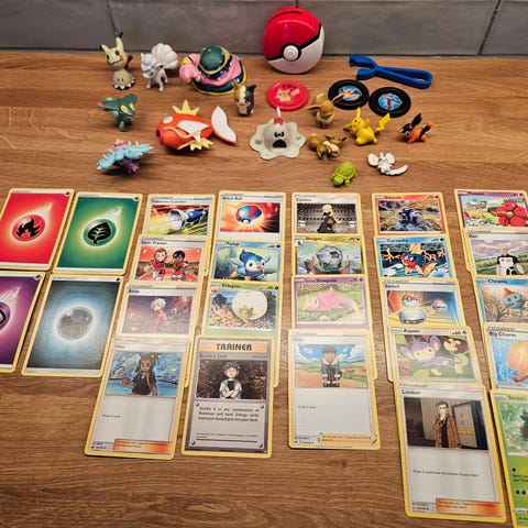 Pokémon lekesett som inkluderer en vulkan og vannfunksjoner. Settet har en bærbar design med en rød skulderrem og en eske med Poké Ball-motiv på lokket. Passer for barn som liker Pokémon-tema leker.