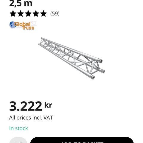 Tilsvarende fra Global Truss koster ca 4,5k stk nytt idag så dette er billig!