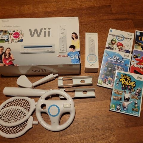 Nintendo Wii familiepakka med 3 stk 4-player spill + spill. 3 kontrollere