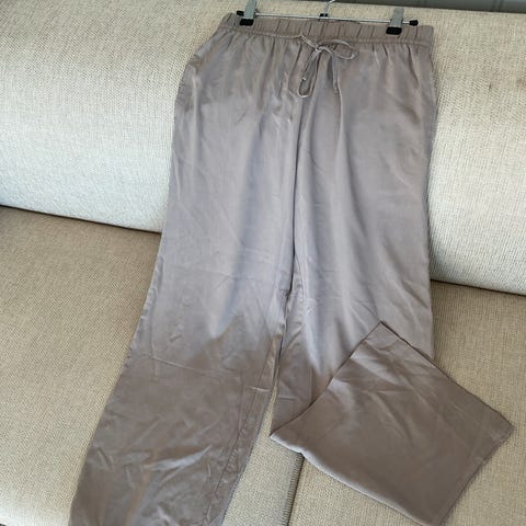 Nydelig bukse i viskose med vide bein. Ny med lapp på. Str. M, men passer S. Lys beige farge. Hentes i Lørenskog eller sendes.