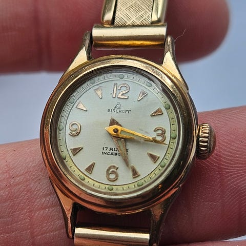 Eldre dameklokke fra Fulton, klassisk rektangulær modell. Klokken tikker og går.