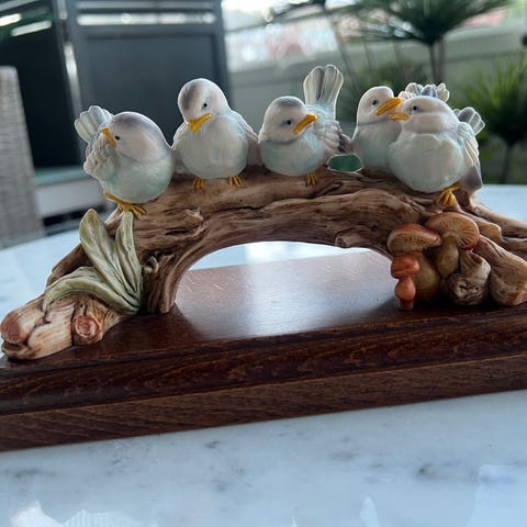 To dekorative fuglefigurer i metall