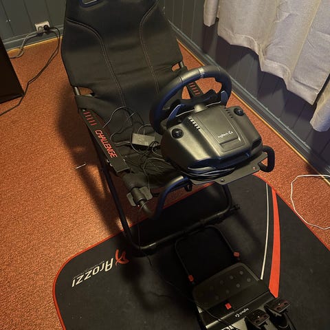 turtle beach velocityone Racing ratt og pedalsett for simracing. Rattet har svart design med gule detaljer og ergonomisk grep. Pedalsettet inkluderer gass, brems og clutch med justerbare pedaler for tilpasset kjøreopplevelse.
