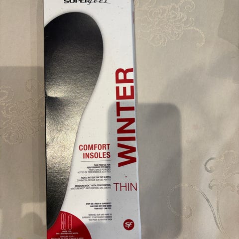 Såle av slitesterk filt for kalde dager, svært robust og behagelig varm. Overflaten av ullfilt regulerer varmen og absorberer svette, er ekstrem fuktighets absorberende. Den forsterkede undersiden glir ikke i skoen. Varm og tørr i sko og støvletter. Helt nye, ubrukte såler! Størrelse: 20, selges for kr 50,-