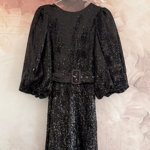 Marli Glitz Dress fra Neo Noir i sort, str. 36. Kjolen har en sløyfe i halsutskjæringen og passer perfekt til nyttårsaften😍