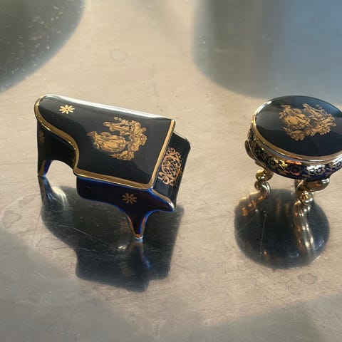 Limoges France dekorativ porselensfigur med fugl og gulldetaljer