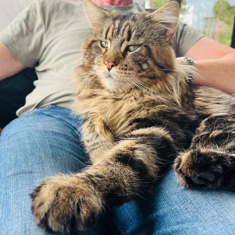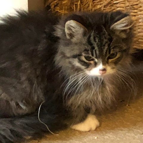 Han er svart med hvite labber å litt hvit under haken å er veldig lurvete for han er så langhåret. Ligner en liten bjørn. Han spiser mat selv både bløtt for tør for drikke også vann . Han er veldig glad i mennesker å hunder . Vil ligge opptil den store hunden vi har selv så hunder er han ikke redd for. Vi har kaldt han for stitch. Han er også renslig å går i klassen for å tisse å bæsje.