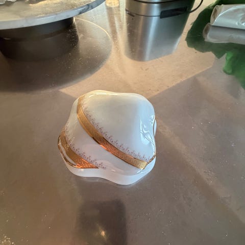 Porcelaine de Paris smykkeskrin / bonbonnière – fransk porselen, gullkant