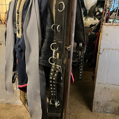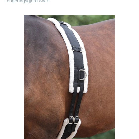 Longeringsgjord for mini eller liten/ung shettis selges. Den ble for liten for mine to på 96 og 92cm i mkh med vanlig shettiskropp. Kan selvsagt brukes med en lengre gjord under magen. Kan ta bedre bilder om ønskelig!