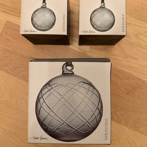 Selges komplett med julekuler som har vært samlet over flere år. Julekuler alene har nok en verdi på over 2000,- komplett. Følger med blandt annet en Halvor Bakke julekule med julesang fra Kurt Nilsen og fjær inni.