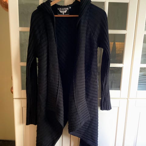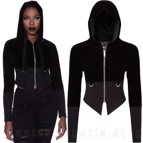 Perfekt som casual goth, lounge eller layering-plagg. Behagelig passform med klassisk goth-stil med lang, pointy hette. Passer mellom s- liten xl
