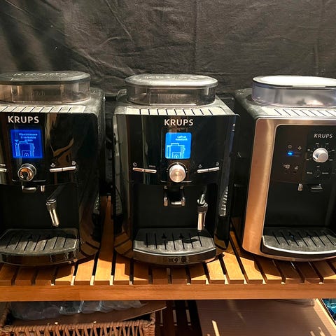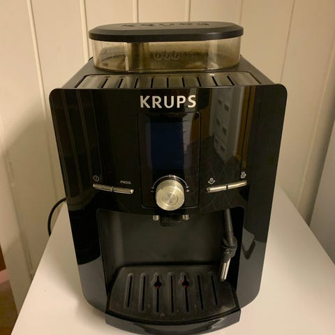 Klassisk Krups kombimaskin som lager både espresso/cappuccino og vanlig filterkaffe. Praktisk alt-i-ett-løsning for kjøkkenet med separat melkeskummer og kaffekanne.