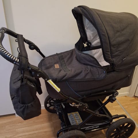 Hele Emmaljunga barnevognsettet er som nytt, med minimale bruksmerker. Inkluderer bærebag og barnevogn. Inkluderer insektnett, tilbehørsveske og regntrekk. Alt vises på bildene.