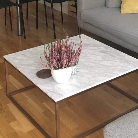 Dette elegante kvadratiske sofabordet i ekte hvit marmor har en solid og massiv konstruksjon med en glatt overflate. Det er et perfekt midtpunkt i stuen eller oppholdsrommet. Bordet veier 100 kg.