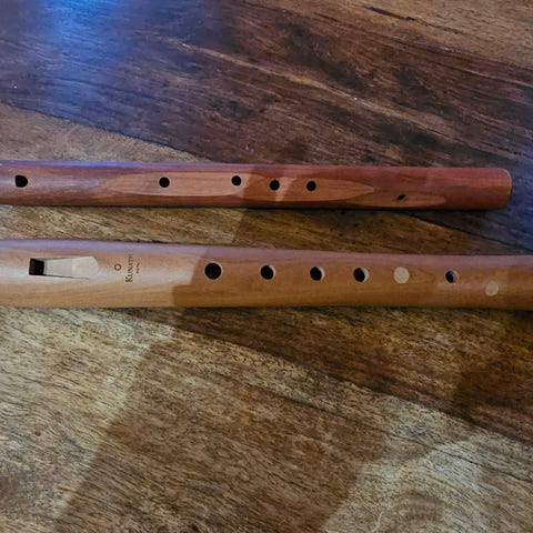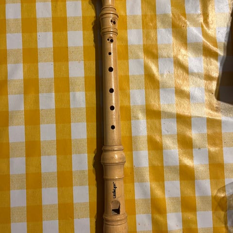 Notehefte/ manual fra 70-tallet for Alt-blokkfløyte . I god stand , minus en liten vannskade i høyre hjørne. Format A4 liggende. 48 sider.
