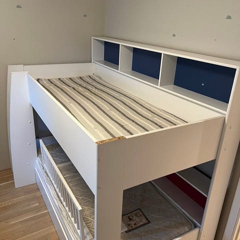 Sengen er litt brukt, kun et år!! Barna vil ha separat rom og da trenger den ikke mer.