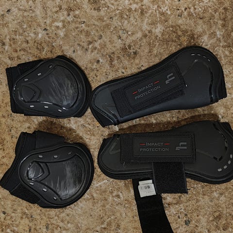 Horze Laval belegg til fremben og bakben. Brukt 8 til 10 ganger. Noen bruksmerker/slitasje. Se bilder. Selges derfor billig.