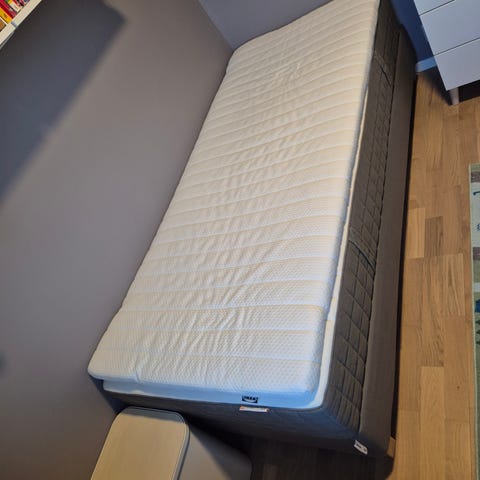 Meget praktisk og pent brukt seng, men gjestenseng og skuffer for oppbevaring. Nypris 3500 umontert, selges nå 1250 montert og pent brukt. Følger også med 2 madrasser. Er brukt med overmadrass.