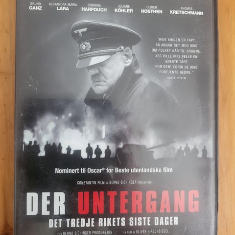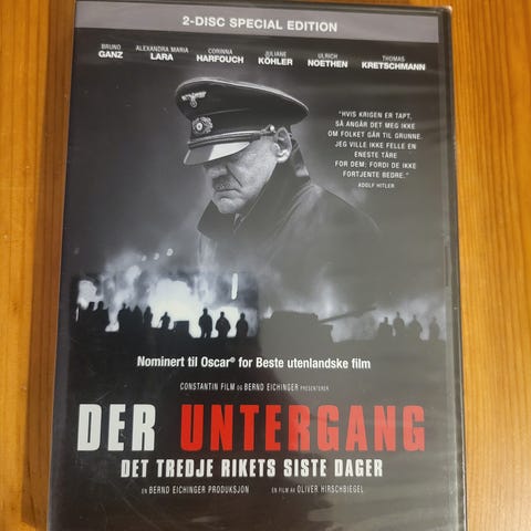 Der Untergang DVD 2-disc special edition med tysk tale og undertekster. Filmen skildrer de siste dagene av det tredje riket. Inkluderer ekstra materiale på to plater. Norsk tekst.