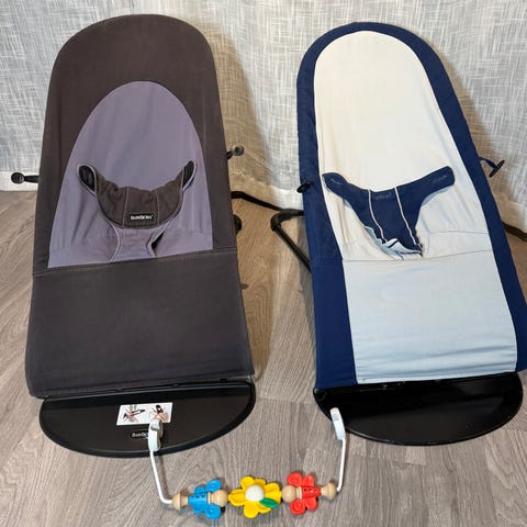 Babybjörn vippestol i fargen grå (stoffet er ikke utvasket, kjøpt slik). Kan brukes fra nyfødt til ca 2 år (trekket kan snus slik at stolen kan brukes til 2 år).